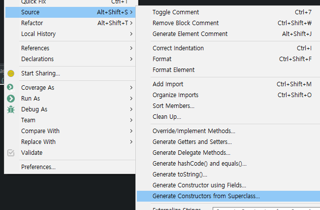 source - Generate constructors from superclass...
